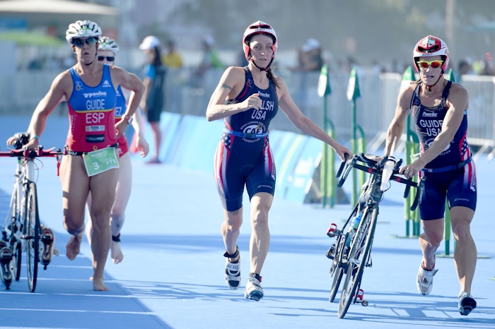 Patricia did her first triathlon as a dare. As an avid runner, Walsh’s friend dared her to complete an IRONMAN, which forced her to learn to swim and improve her biking skills. Now, Walsh spends seven days a week training a minimum of two to three disciplines plus yoga. When she’s not training she spends her time as a Court Appointed Special Advocate for children in the court system of Travis County, in Texas. She lost her vision at age 14 as a result of a pediatric brain tumor and complications from surgery. She run marathons for years before going to triathlon.