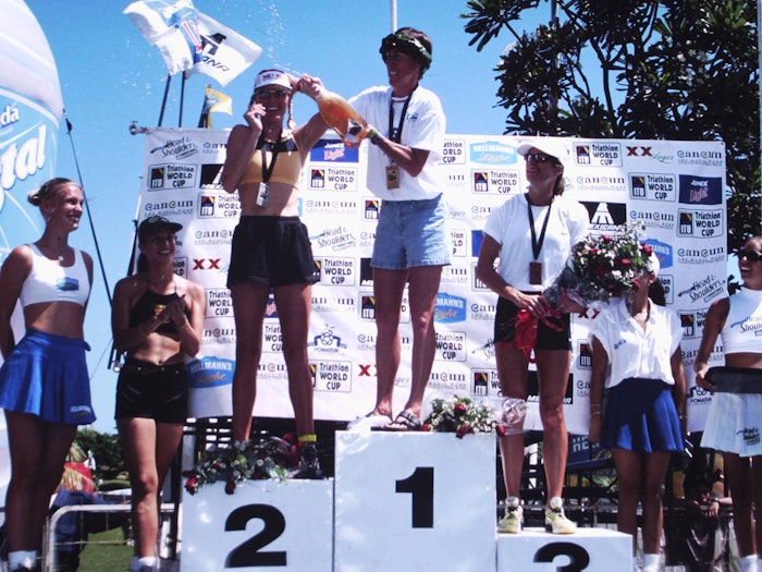When it comes to sustained success over the course of a triathlon career, Australia’s Michellie Jones is the undisputed queen. From her first ITU World Championship in 1992, to a bronze medal in her final ITU World Championship race in 2003, she collected eight ITU World Championship podiums in her career. That’s including a three-year break from the circuit in the mid-90s. Only three times she did compete an ITU World Championship race and not make the podium, her debut race in 1990, and then in 1999 and 2002 when she finished fourth.