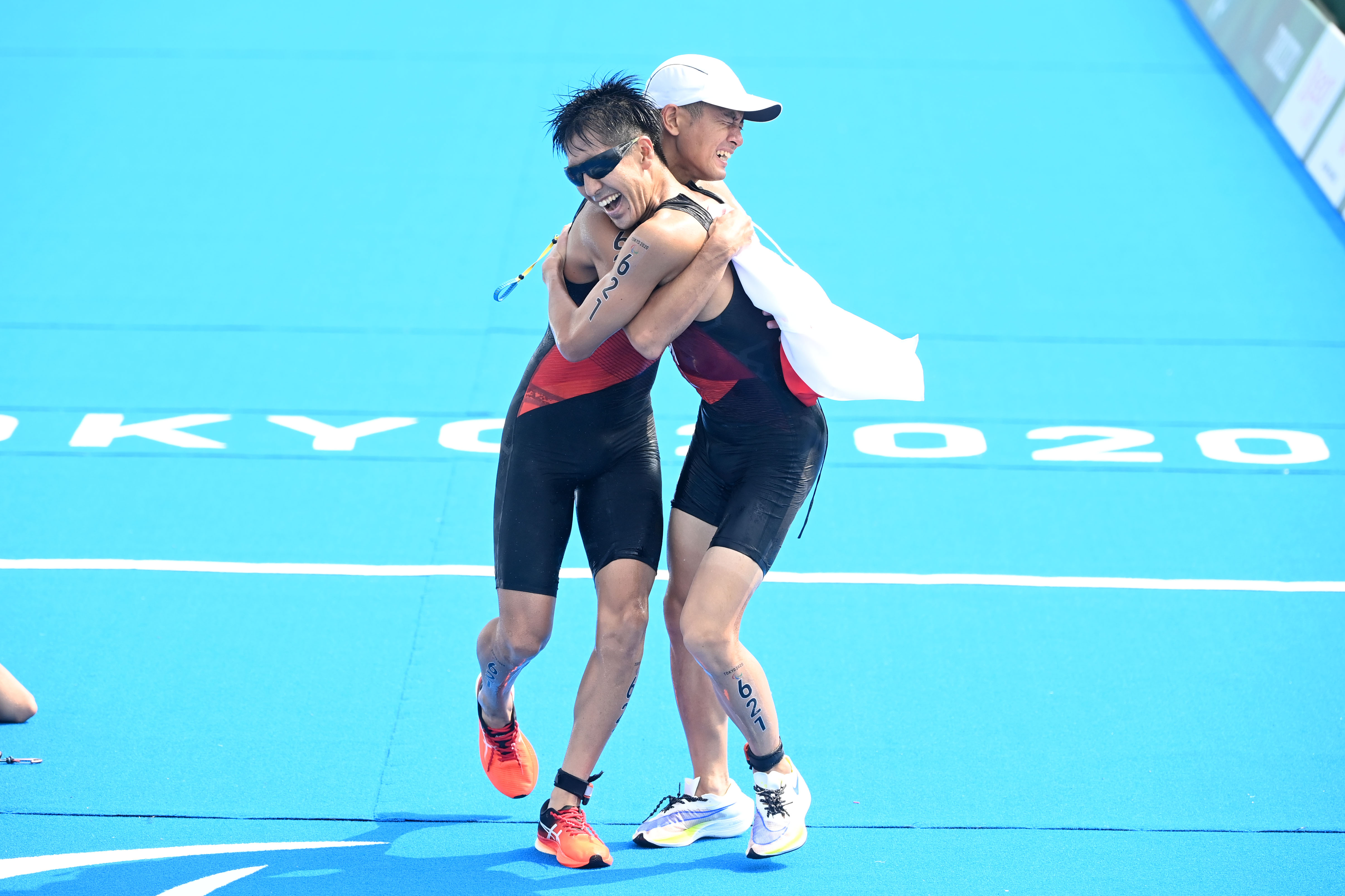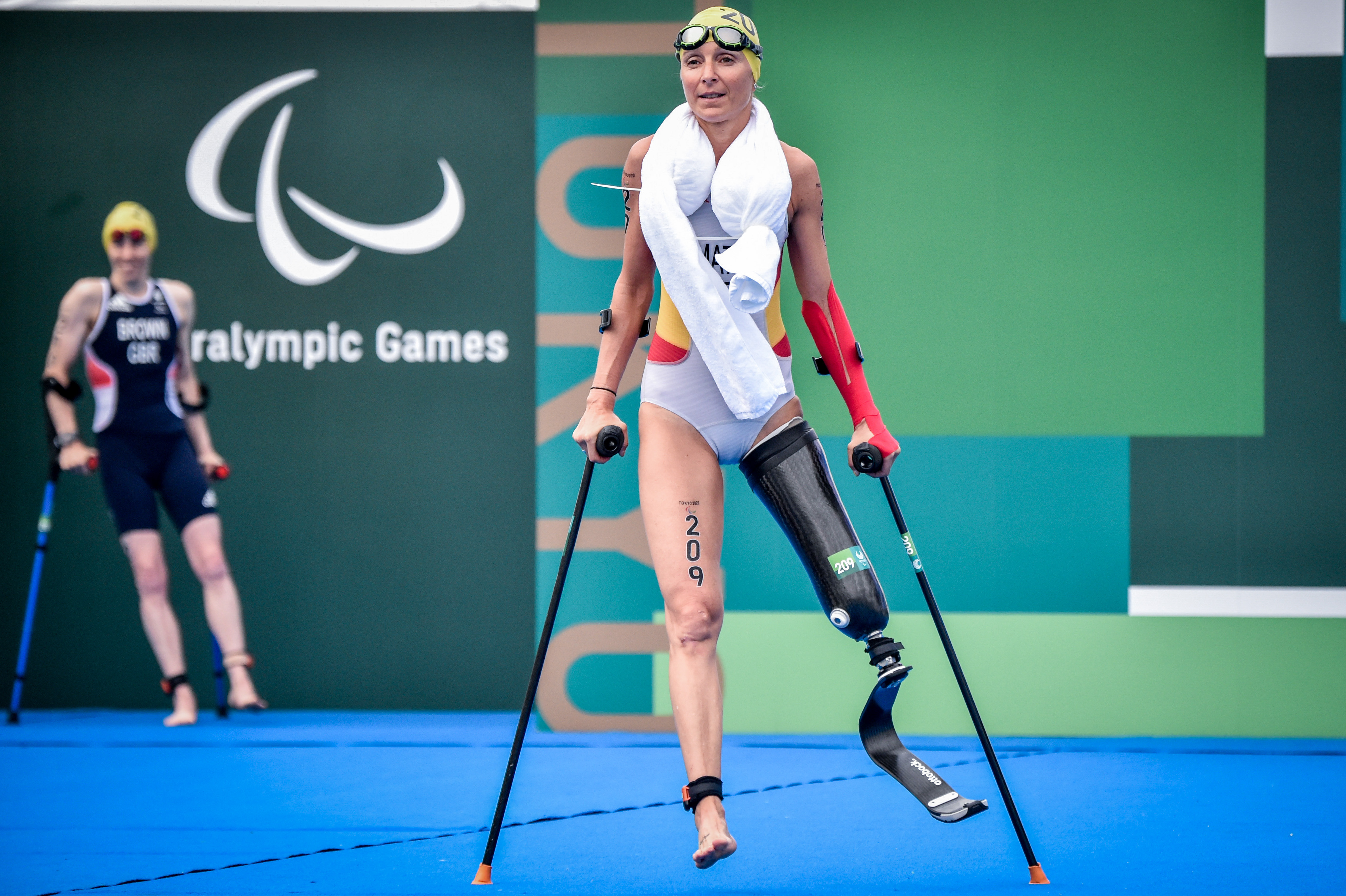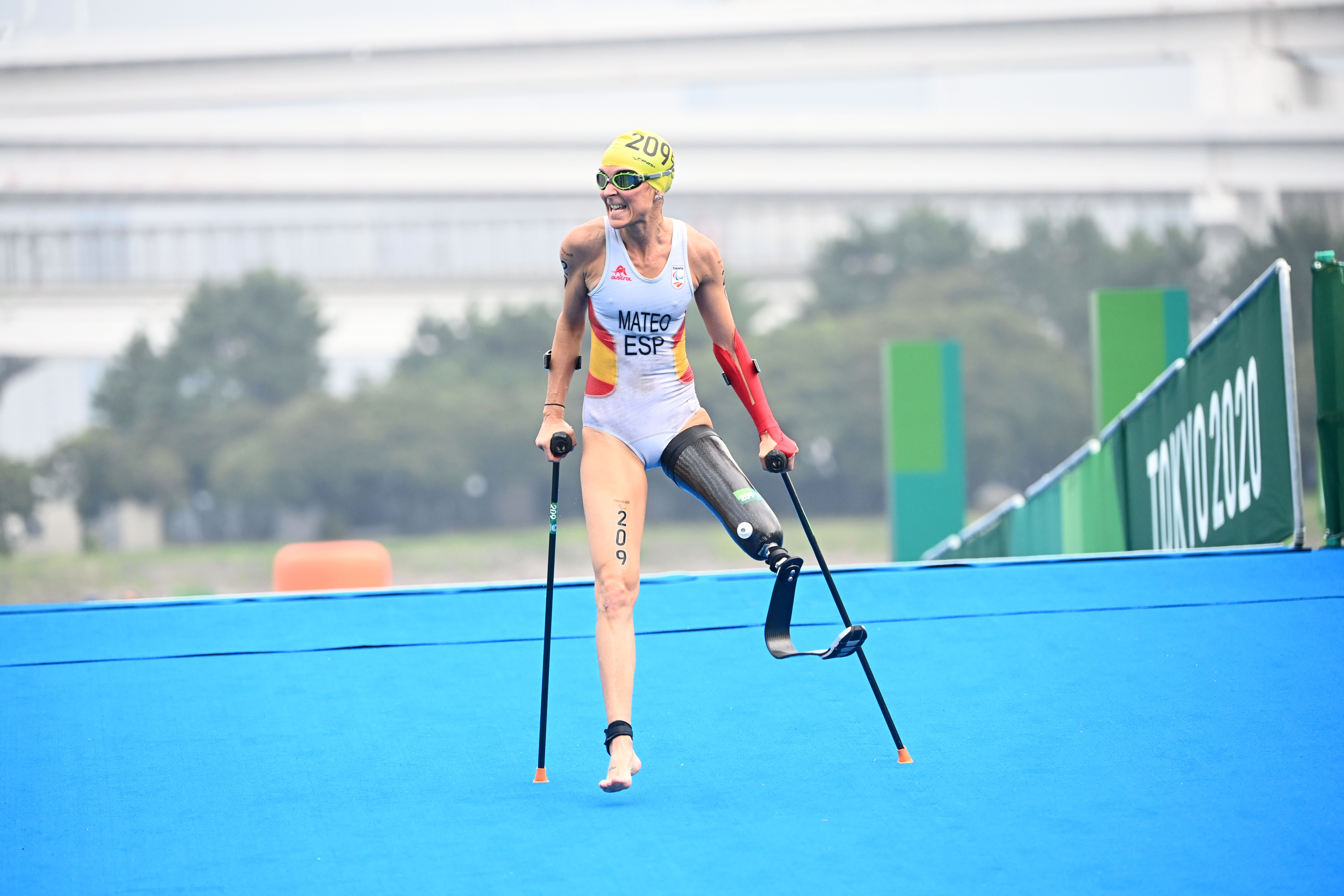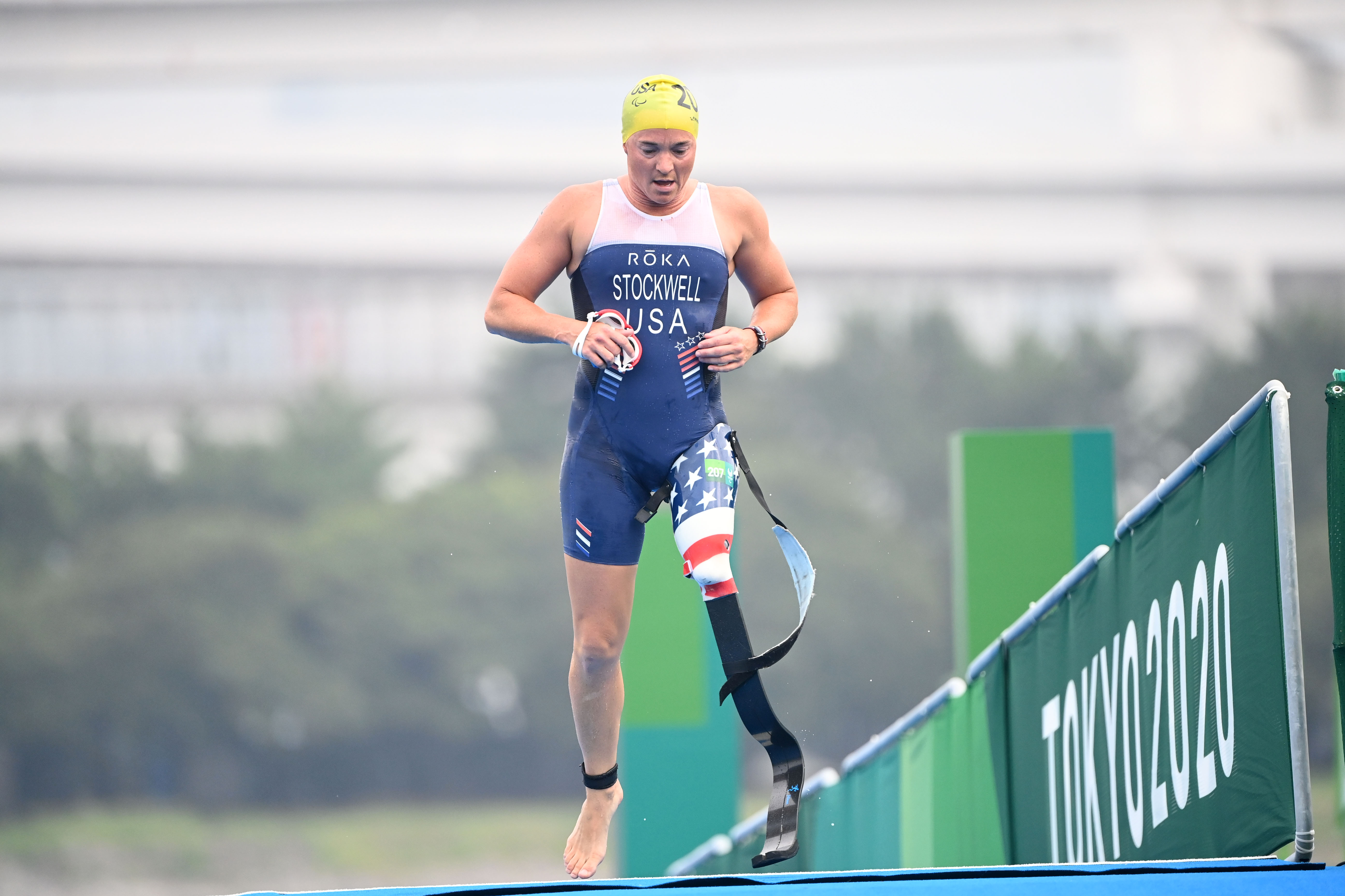 There are swim-exit assistants who may assist the athletes upon swim exit depending on the swim cap colour, providing full lifting (red swim cap) or support assistance (yellow swim cap). There is a designated pre-transition area for athletes to collect their assistive devices (PTS2 to PTS4) or access their daily wheelchairs and be stripped by their handlers if needed (PTWC).