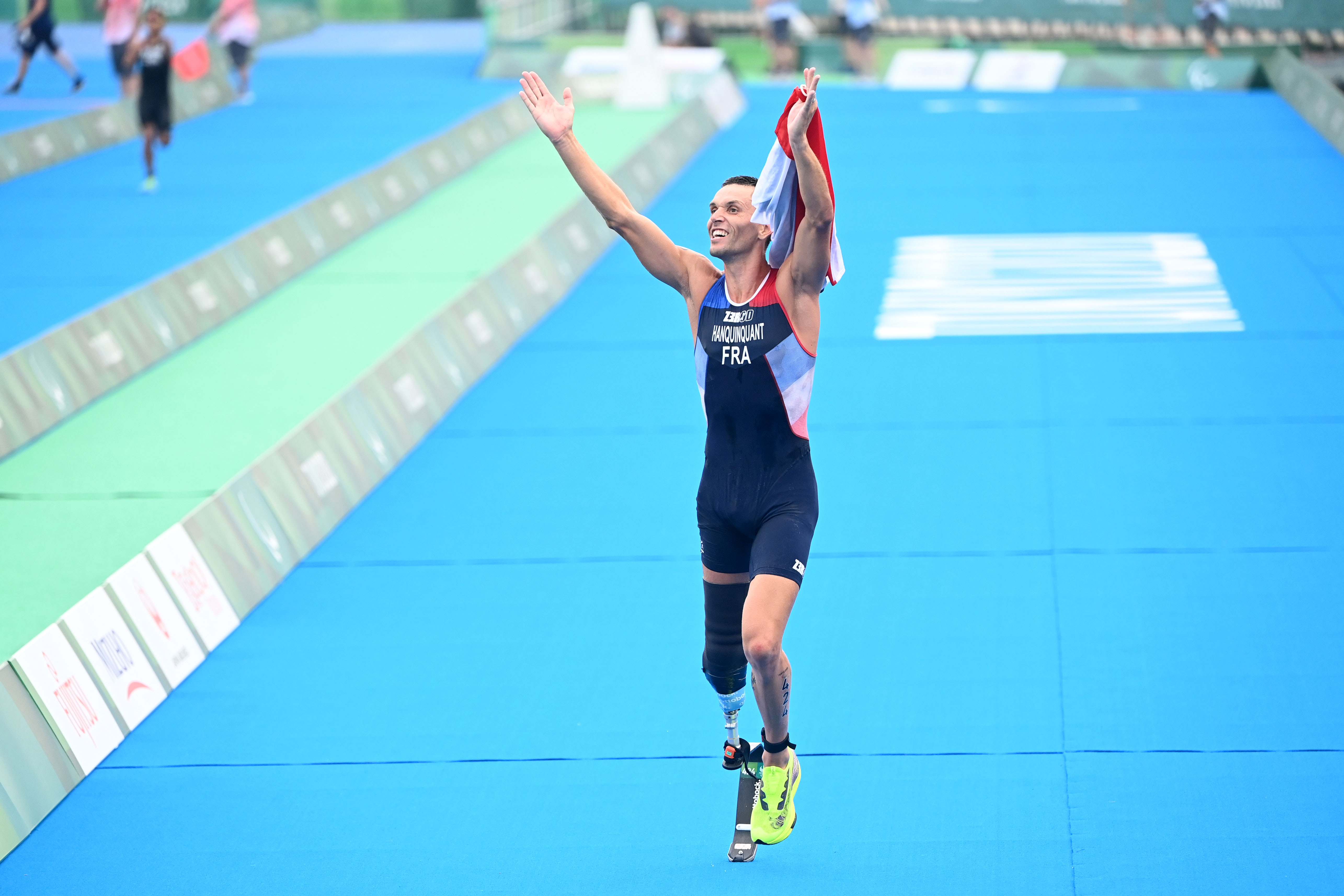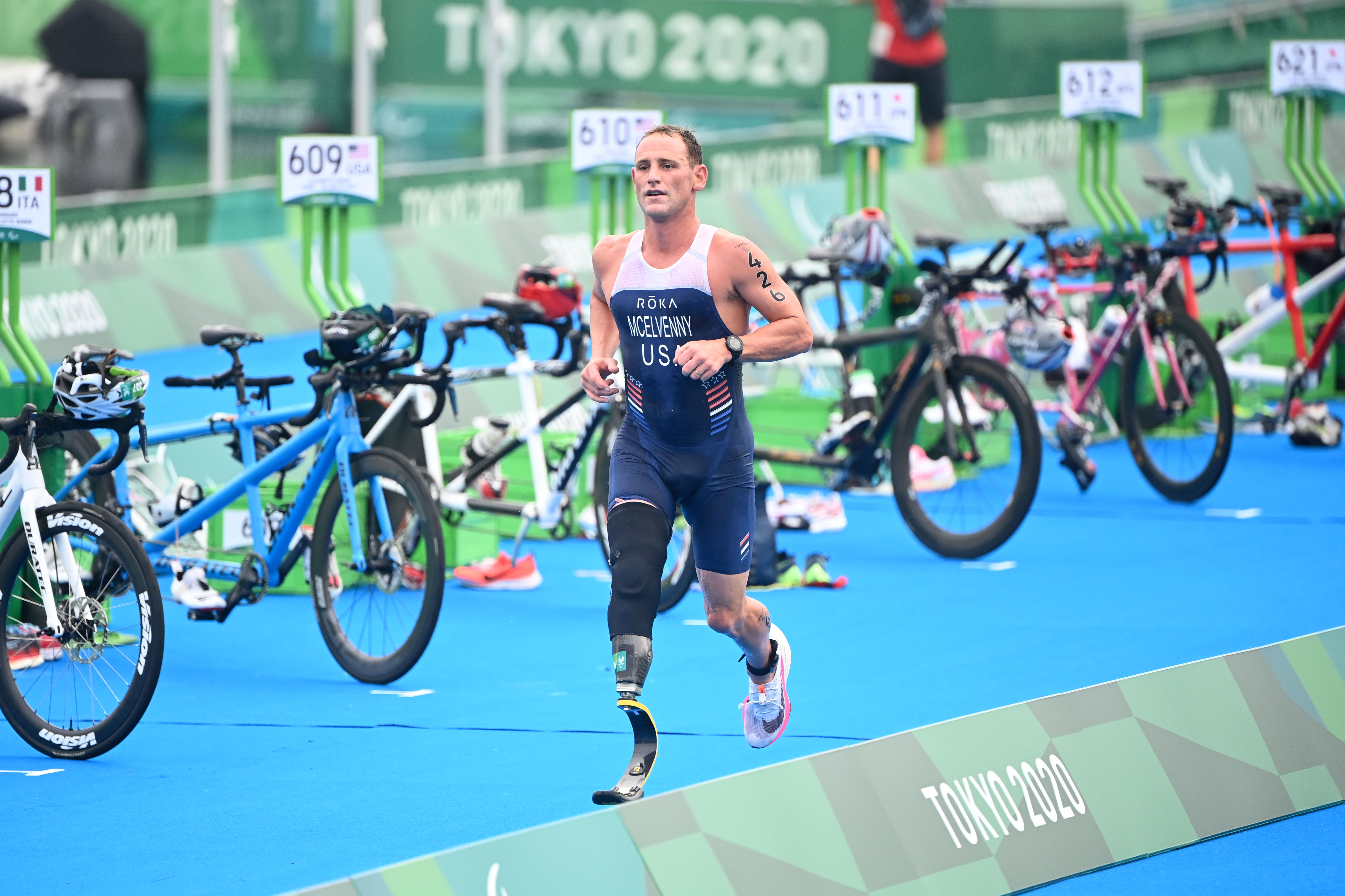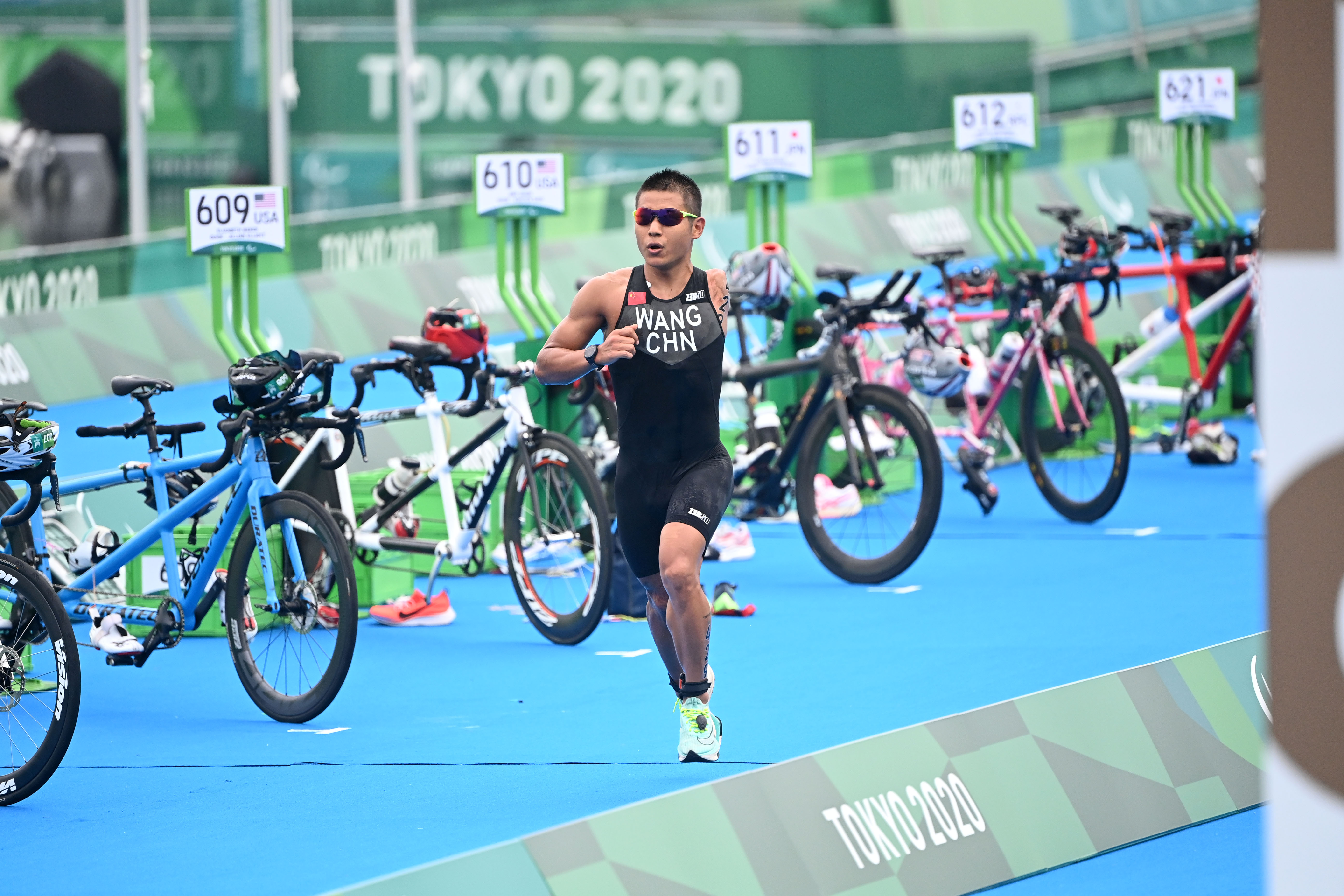 The final section is a 5 km run, which athletes can complete in racing wheelchairs (PTWC), running with or without support of assistive devices (PTS2, PTS3 & PTS4) or alongside their guides (PTVI).