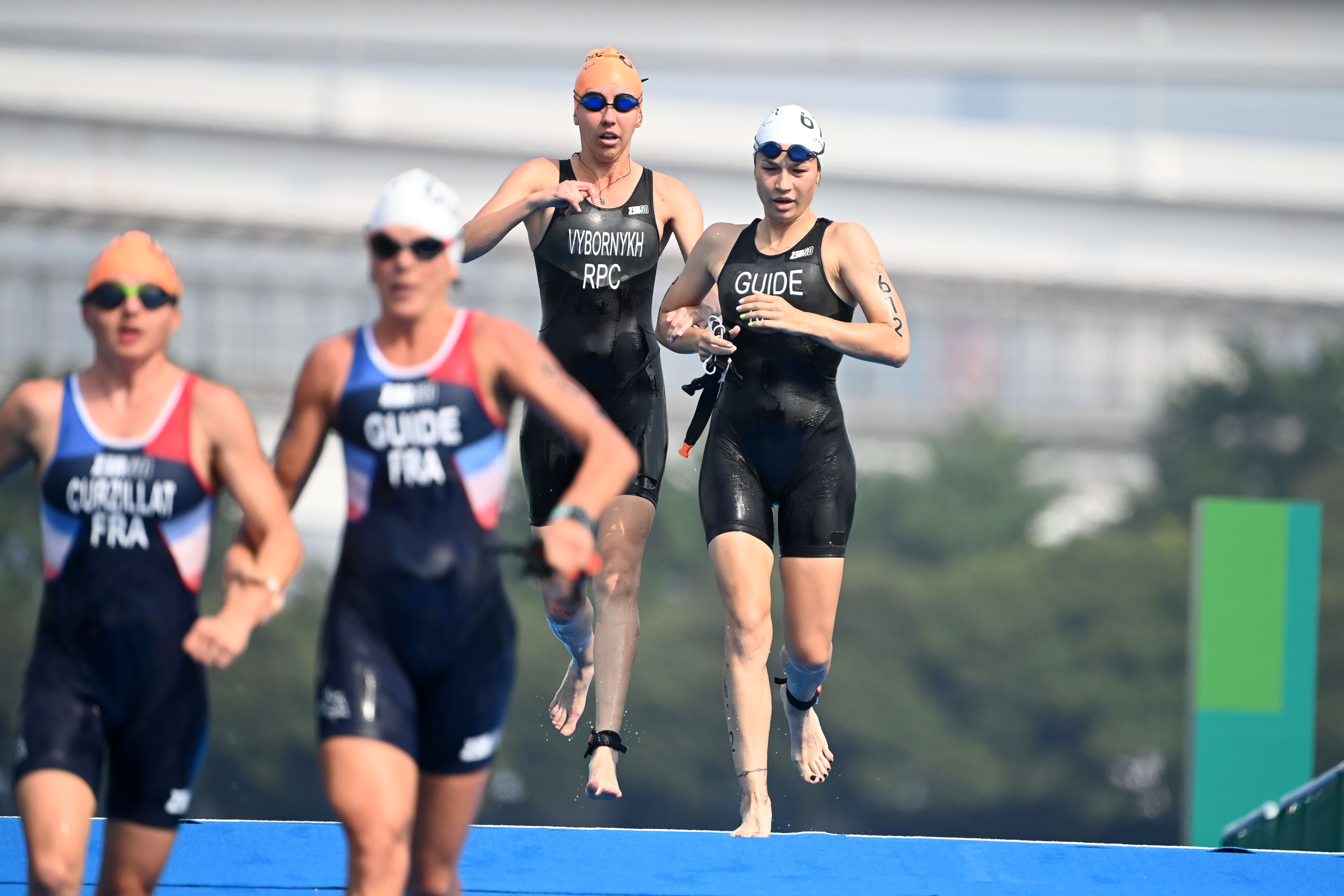 There are some particularities in Para triathlon, as athletes with varying levels of impairment need different support levels when exiting the water and before reaching the transition area.