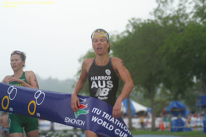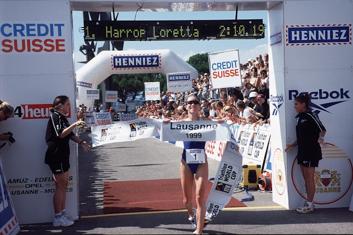 Loretta Harrop hit the ITU World Cup circuit regularly from 1997 and quickly worked out the strategy she would become known for. Swim fast, work with a few select others to bike even faster and build an unbeatable lead from which she couldn’t be caught. It worked in her very first ITU World Cup podium, in Sydney in 1997, and then many more.